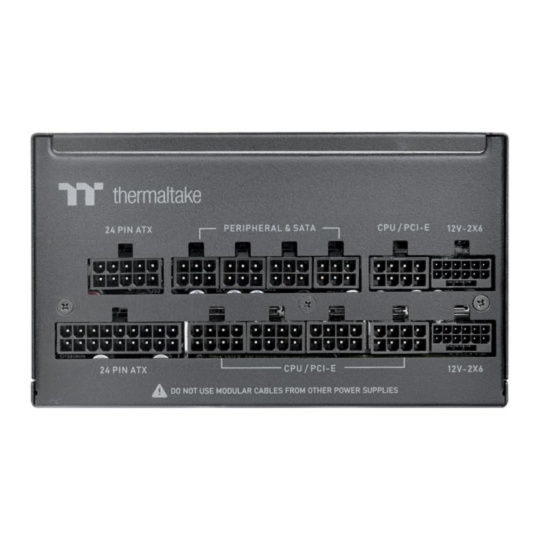Toughpower PT 1200W Platinum je kompatibilní s ATX 3.1, má certifikaci 80 PLUS Platinum a podporuje nativní PCIe Gen 5.1 (12+4pin) pro napájení nové generace grafických karet. Poskytuje 1200 W nepřetržitého výkonu při 40 °C.