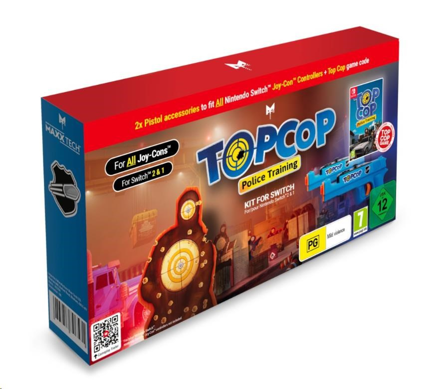 Top Cop: Police Training je ultimátní arkádová střílečka, které vdechuje život akce z reálného světa! Top Cop je duchovní nástupce hry Mad Bullets a kombinuje bláznivě rychlou hratelnost s přesným sledováním cílů a vylepšeným zaměřováním – a nyní je podmanivější než kdy dřív díky dvěma barvitým zbraním navrženým pro vaše ovladače Nintendo Switch™ Joy-Con.
