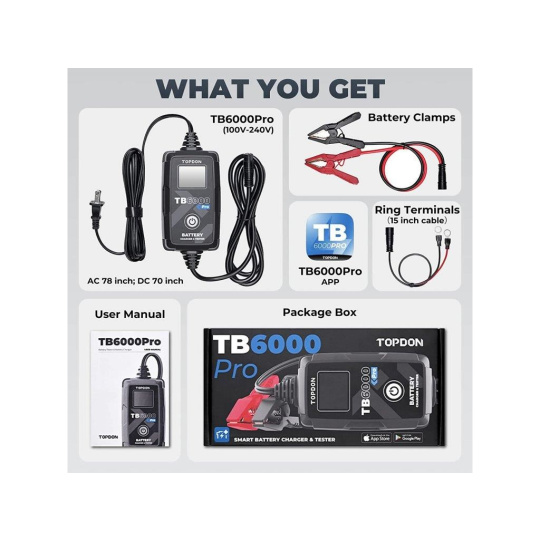 Jste už unavení individuálním nastavováním nabíjení? Nechte TB6000Pro udělat práci za vás. Patentované 9stupňové inteligentní nabíjení společnosti TOPDON poskytuje vaší baterii optimalizovaný, udržovaný a integrovaný proces nabíjení.