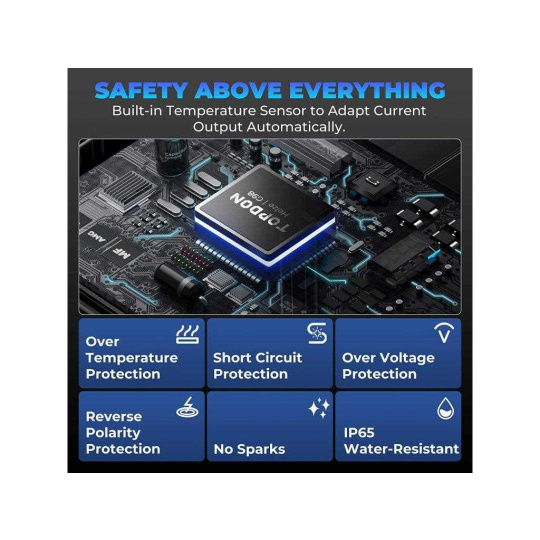 Díky inteligentním bezpečnostním funkcím TB6000Pro jsou uživatelé chráněni proti přepólování, jiskření, zkratu, přehřátí a přepětí.