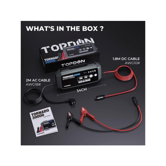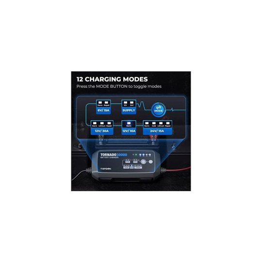 S jeho 9stupňovým, chytrým nabíjením a s jeho 12 nabíjecími módy, poskytuje TORNADO30000 bezkonkurenční možnost nabíjení a ochrany pro svého uživatele.