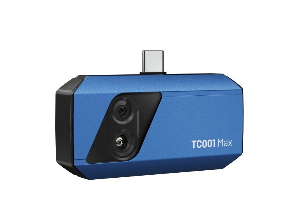 TC001 Max, špičková termální kamera pro systémy iOS, Android a Windows. Je vybaven dvěma objektivy, což umožňuje snadno rozpoznat obrysy objektů, jako jsou obvody a potrubí.