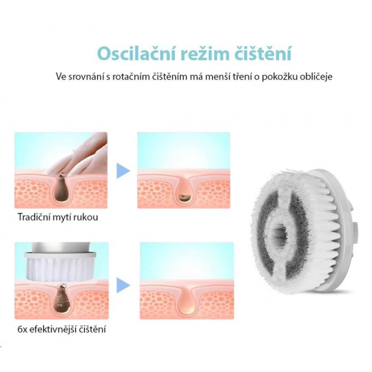 Kartáček na čištění pleti odstraňuje nečistoty, mastnotu a odlupující se pokožku.