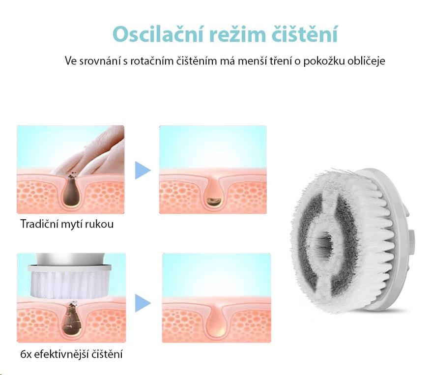 Kartáček na čištění pleti odstraňuje nečistoty, mastnotu a odlupující se pokožku.