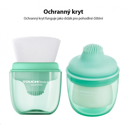 Oboustranný kartáček TOUCHBeauty 1762 je ideální pomocník pro čištění pleti (nejen) na cestách. Z jedné strany nabízí kartáček s dokonce 350 000 ultra jemnými štětinkami pro čištění obličeje a pro hloubkové čištění, z druhé strany silikonový kartáček ve tvaru kapky, který byl speciálně navržen pro čištění obličeje a čela. Důmyslná konstrukce umožňuje používat úložný kryt i jako stojánek pro kartáček. Zároveň jej na cestách perfektně chrání.