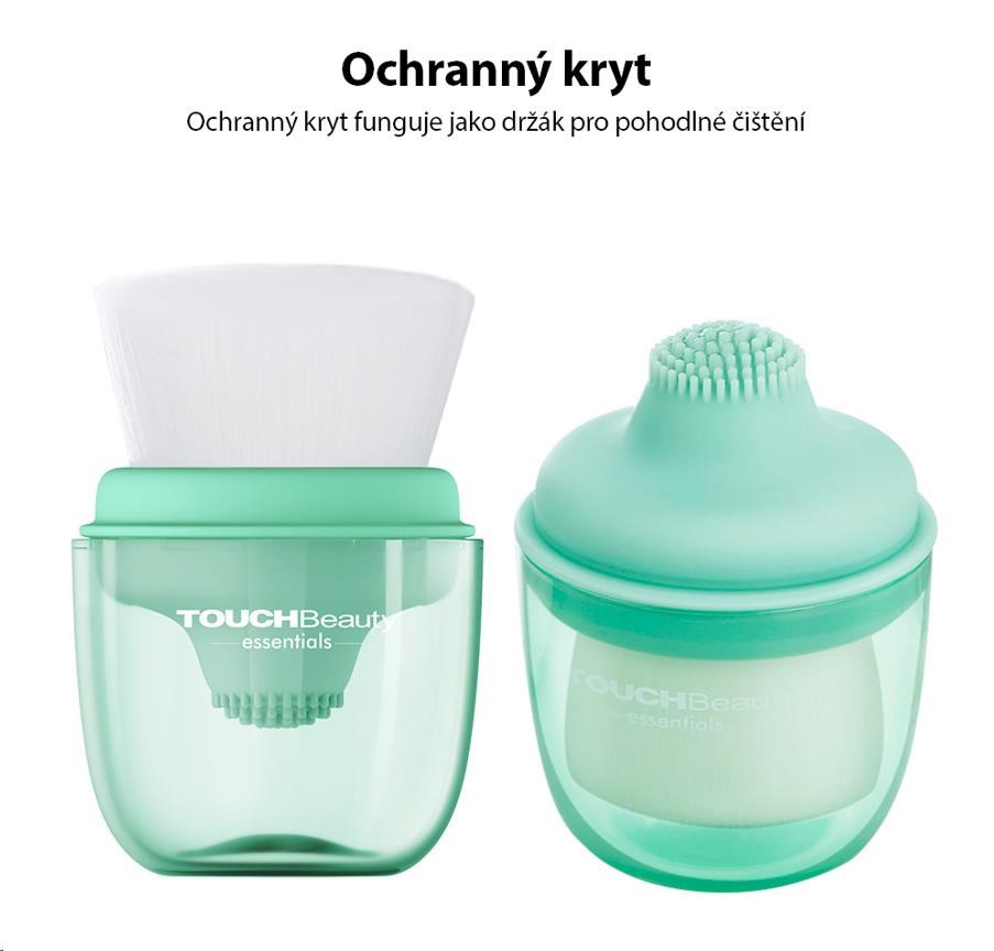 Oboustranný kartáček TOUCHBeauty 1762 je ideální pomocník pro čištění pleti (nejen) na cestách. Z jedné strany nabízí kartáček s dokonce 350 000 ultra jemnými štětinkami pro čištění obličeje a pro hloubkové čištění, z druhé strany silikonový kartáček ve tvaru kapky, který byl speciálně navržen pro čištění obličeje a čela. Důmyslná konstrukce umožňuje používat úložný kryt i jako stojánek pro kartáček. Zároveň jej na cestách perfektně chrání.