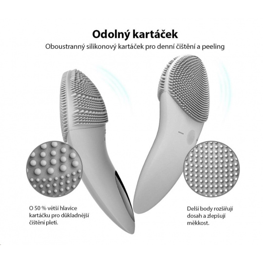 • Oboustrannou čisticí hlavu lze použít pro každodenní čištění a exfoliaci.