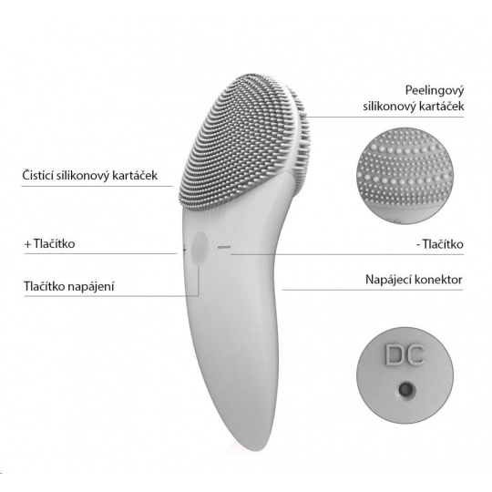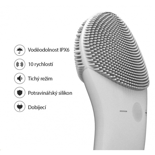 Každodenní čisticí plocha je vybavena jemnými silikonovými dotykovými body, které čistí obličej bez poškození pokožky.