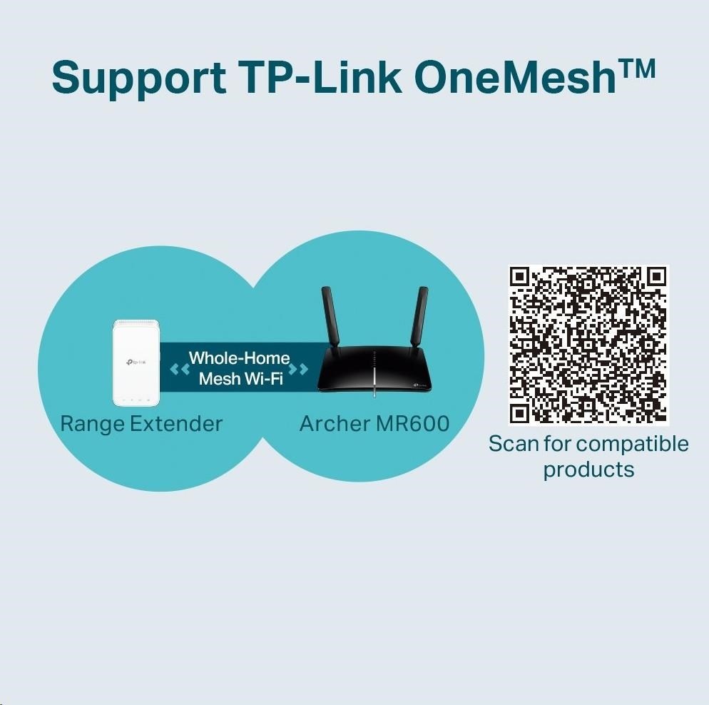 - Podporuje TP Link OneMeshTM – spolupracuje s produkty TP-Link OneMesh a vytváří flexibilní a nákladově efektivní síť Mesh