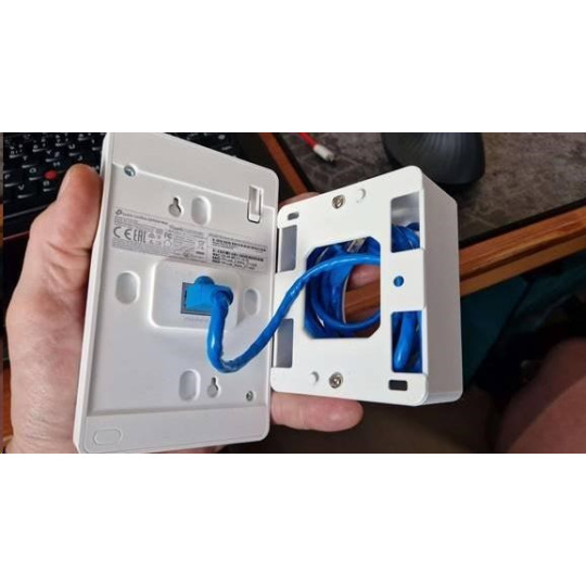 Plastový montážní box je určen pro zakrytí kabelů a připevnění nástěnného WiFi AP EAP235-Wall, EAP615-Wall a EAP655-Wall od TP-Linku ke stěně pomocí dvou šroubů. Držák je vyroben z materiálu PETG na 3D tiskárně, je bílé barvy.