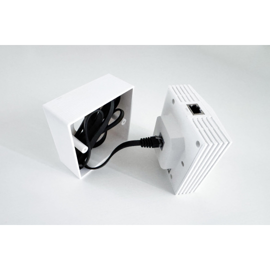 Plastový montážní box je určen pro zakrytí kabelů a připevnění nástěnného WiFi EAP a vypínačů Tapo EAP115-Wall, EAP230-Wall, EAP650-Wall, Tapo S210, Tapo S220 od TP-Linku ke stěně pomocí dvou šroubů. Držák je vyroben z materiálu PETG na 3D tiskárně, je bílé barvy.