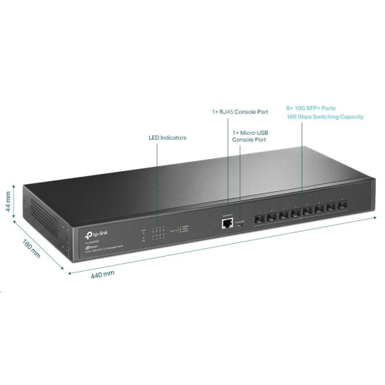 - Bleskurychlá připojení 10G: 8 portů SFP+ s rychlostí 10 Gbit/s poskytuje vysoce propustné širokopásmové připojení a přepínací kapacitu 160 Gbit/s bez blokování.