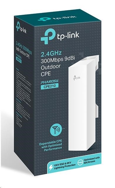 Venkovní jednotka TP-Link CPE210 s parametry 2,4 GHz 300 Mbit/s 9 dBi byla navržena pro cenově hospodárná řešení venkovních bezdrátových sítí. Umožňuje centralizovanou správu a je tak flexibilním a ideálním řešením pro aplikace typu point-to-point, point-to-multipoint a venkovní pokrytí bezdrátovou sítí. Díky výkonu na profesionální úrovni a uživatelsky přívětivému designu je jednotka CPE210 perfektní volbou pro firemní i domácí uživatele.