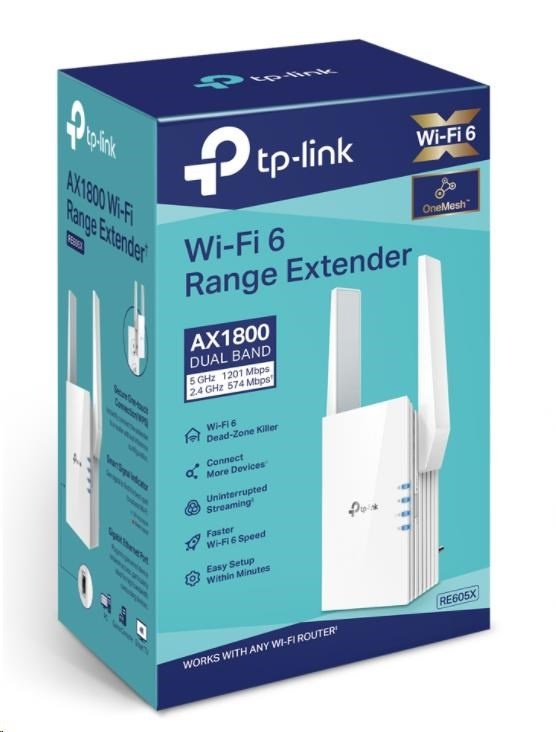 - RE605X přichází s poslední bezdrátovou technologií Wi-Fi 6, která přináší vyšší rychlost, větší kapacitu a snížené přetížení sítě.