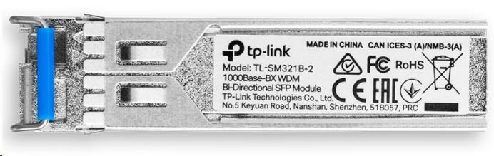 - TTP-Link TL-SM321B-2 byl vyvinut v souladu se standardem Small Form Pluggable Multi-Source Agreement (SFP-MSA). Přenáší Gigabit Ethernet na vzdálenost až 2 km pomocí jednoho optického vlákna 9/125 µm SMF (single-mode fiber, jednovidový optický kabel). Jako jednovláknový WDM optický transceiver používá pro každý směr komunikace jinou vlnovou délku. Na protější straně optické linky lze použít např. SFP modul TP-Link TL-SM321A-2 nebo média konvertor TP-Link TL-FC311A-2.