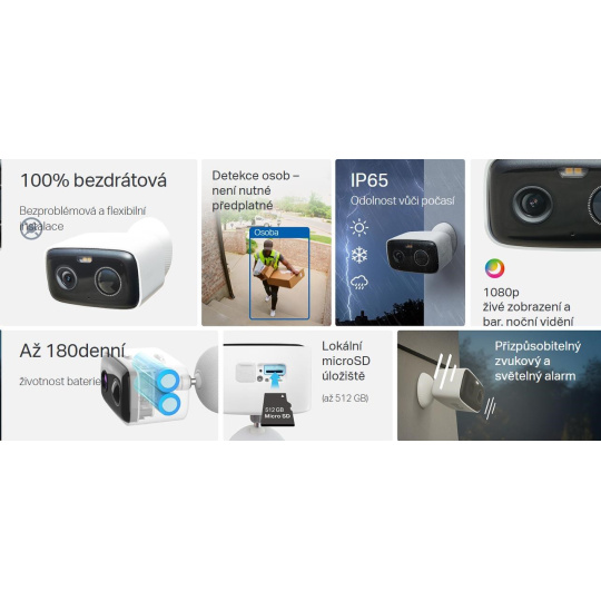 - Lokální a cloudové úložiště: Nahrávejte lokálně na 512GB kartu microSD (není součástí balení) nebo si předplaťte službu Tapo Care pro 30denní cloudové úložiště.**