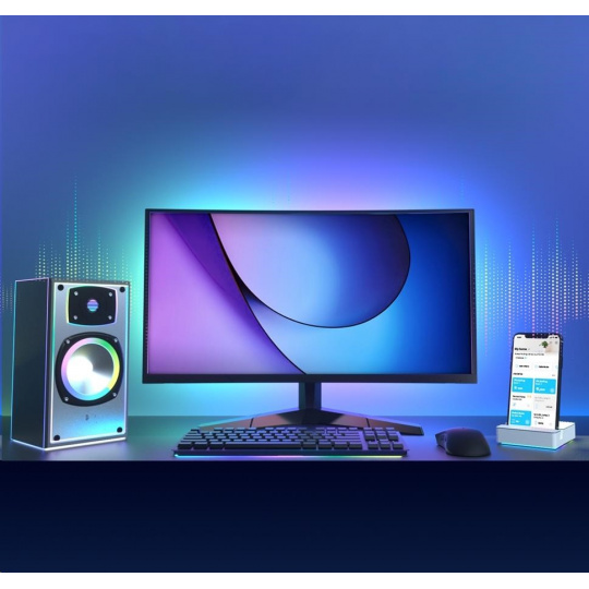 - Hlasové ovládání – pomocí jednoduchých hlasových povelů ovládejte světelný pásek přes Alexu nebo Asistenta Google.