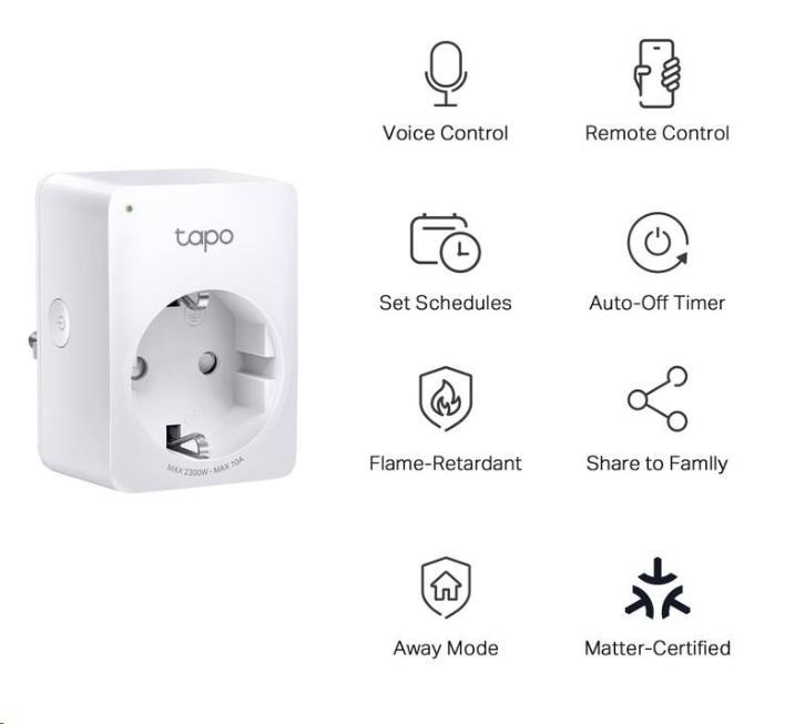 TP-Link Tapo P100M(EU) chytrá WiFi mini zásuvka (2300W,10A,2,4 GHz,BT)