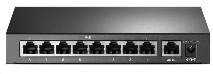 Vyhovuje standardu 802.3af/at PoE + a podporuje až 30 W napájení na každém PoE portu. Celkový výkon až 65 W při napájení přes PoE* pro 8× PoE porty, umožňuje otevřít široké spektrum aplikací, jako je dohled pro kanceláře, koleje a malé podniky. Je plně kompatibilní s IP kamerami, přístupovými body, IP telefony, počítači, tiskárnami atd.