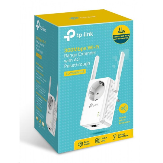| Package Contents | 300Mbps Wi-Fi Range Extender with AC Passthrough TL-WA860RE RJ-45 Ethernet Cable Resource CD Quick Installation Guide |