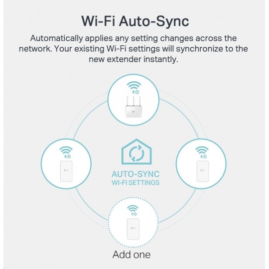 - Automatická synchronizace Wi-Fi – jednoduše zkopírujte nastavení Wi-Fi sítě routeru a použijte všechny změny v celé zabezpečené síti Powerline s funkcemi klonování a přesunu Wi-Fi.