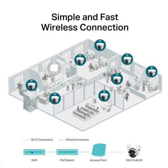 - Bezdrátové připojení: Snadné a rychlé nasazení na místa pokrytá Wi-Fi signálem.