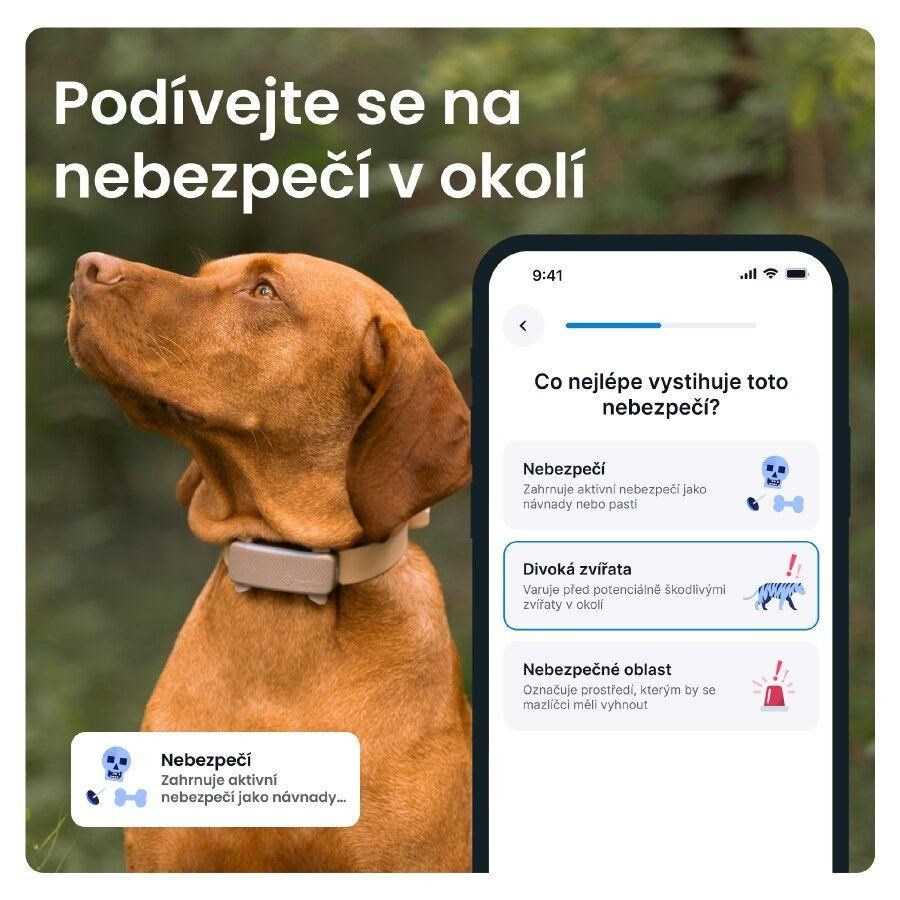 GPS tracker pro psy je 100% vodotěsný, odolný proti nárazům a jeho baterie vydrží až 10 dnů. Pasuje na většinu obojků a postrojů. Je určen pro psy o hmotnosti nad 4 kg.Zprávy o nebezpečí
