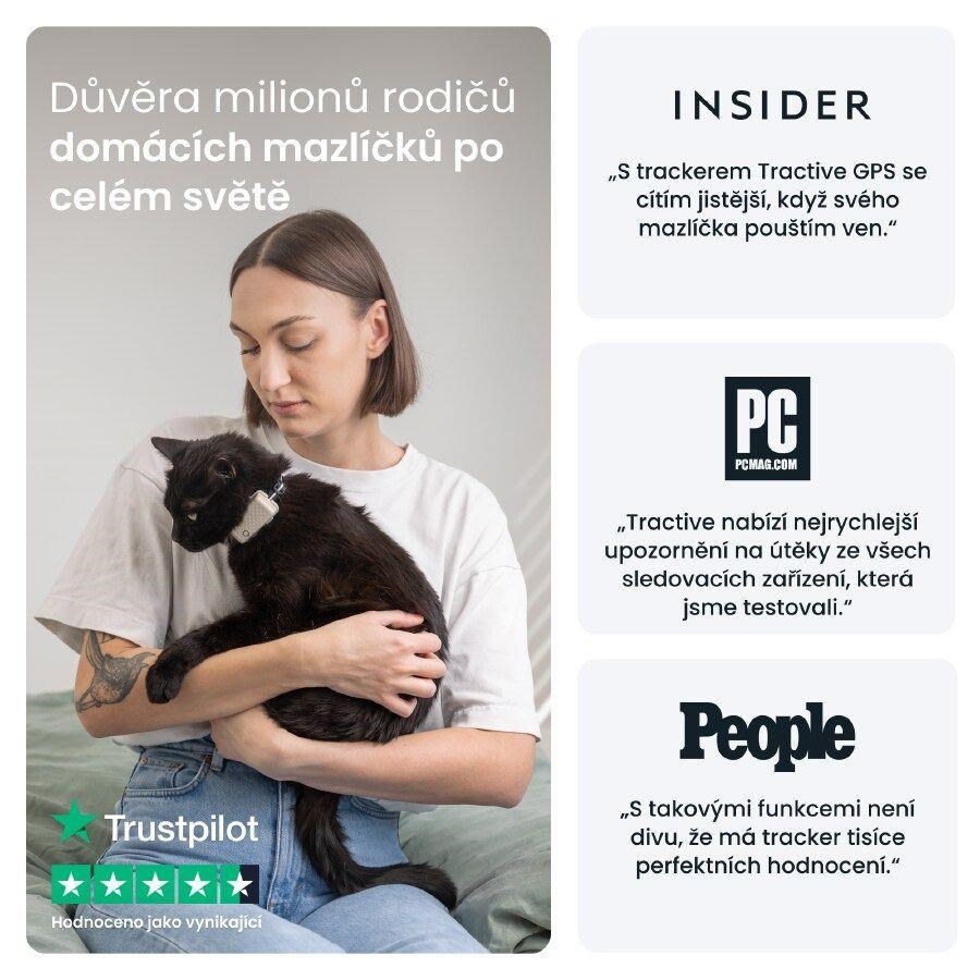 Tractive CAT Mini nejlepší GPS tracker kočky, který vašemu kočičímu příteli zajistí bezpečí. Budete dostávat okamžitá upozornění, když uteče, objevíte jeho území díky Historii polohy a můžete ho sledovat v reálném čase.Také můžete sledovat úroveň jeho spánku a aktivity, dostávat zdravotní upozornění a sledovat denní Skóre kondice. S GPS pro kočky rovněž zdarma dostanete bezpečnostní obojek Rogz a dvě různé spony pro upevnění.
