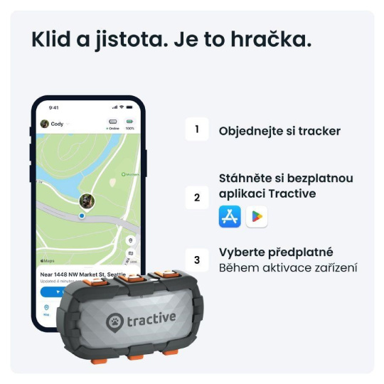 Základní aplikace Tractive GPS Pet Finder pro chytré telefony a tablety se systémem iOS, Android a Windows. Minimální požadavky na verze systémů jsou iOS 11 a Android 5.0.