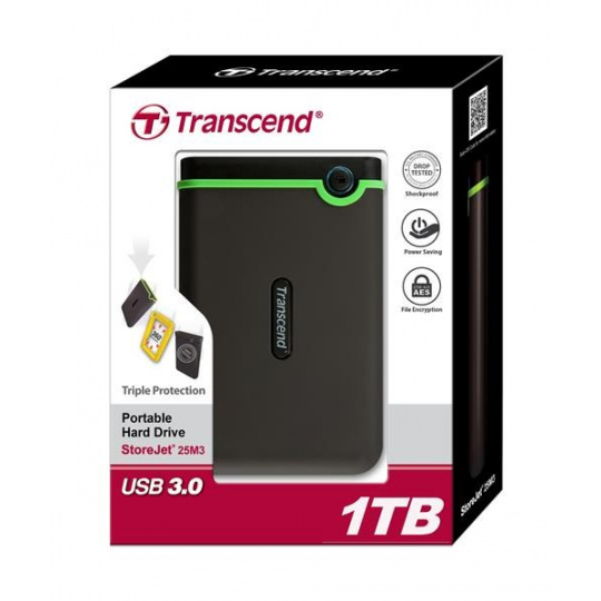 TRANSCEND externí HDD USB 3.0 StoreJet 25M3S, 1TB, Black (SATA, Rubber Case, Anti-Shock)