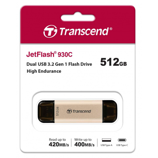 Transcend's JetFlash 930C flash drive features a dual connector that supports USB Type-A and Type-C devices. With a USB 3.2 Gen 1 interface and built-in 3D NAND flash memory, its speeds can reach 420MB/s. High capacity of up to 512GB creates sufficient storage space for media files and gaming files. If you are searching for a portable and stylish storage device to play games, Transcend's JetFlash 930C is the one!