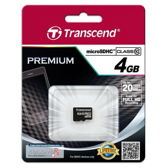 TRANSCEND MicroSDHC karta 4GB Class 10, bez adaptéru
