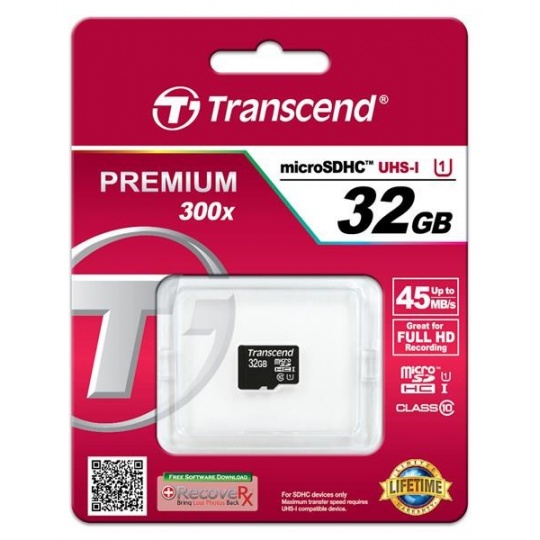 TRANSCEND MicroSDHC karta 32GB Premium, Class 10 UHS-I 300x, bez adaptéru