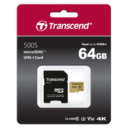 Transcend's microSDXC/SDHC 500S memory cards meet both the UHS Speed Class 3 (U3) and the UHS Video Speed Class 30 (V30) standards for 4K Ultra HD video recordings, with read/write speeds of up to 95MB/s and 60MB/s respectively.