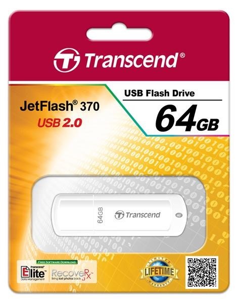 TRANSCEND Flash Disk 64GB JetFlash®370, USB 2.0 (R:16/W:6 MB/s) bílá
