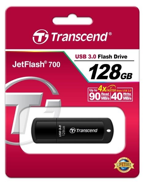 TRANSCEND Flash Disk 128GB JetFlash®700, USB 3.0 (R:90/W:40 MB/s) černá