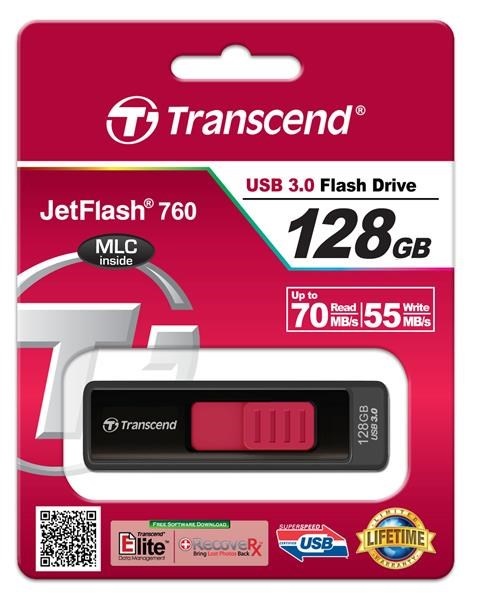 TRANSCEND Flash Disk 128GB JetFlash®760, USB 3.0 (R:85/W:34 MB/s) černá/červená