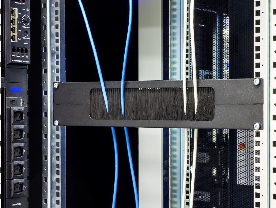 19" průchozí panel 2U rozdělený horizontálně, kartáč, otvor 330 x 55 mm.