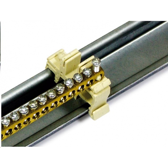 Zemnící modul na liště DIN určený pro montáž na 19“ vertikály, 36 přípojných míst do max. průřezu 10 mm2, jedno přívodní místo do max. průřezu 25 mm2.