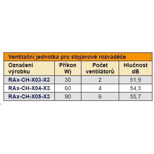 Ventilační jednotka pro stojanové rozvaděče – do čepice se instaluje z venkovní strany rozvaděče, do základny pak z vnitřní strany rozvaděče. Při instalaci do základny rozvaděče je nutno použít montážní rám spodní ventilační jednotky – RAx-CH-Xxx-X1, který se instaluje pomocí oboustranné lepící pásky.
