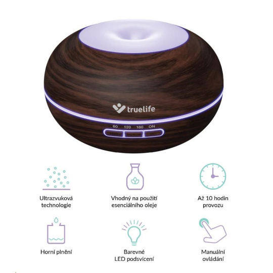 Difuzér Truelife provoní vzduch v místnosti během chvilky, stačí do nádržky přidat pár kapek esenciálního oleje. Ať už jste milovníky aromaterapie, chcete si vytvořit příjemnou relaxační atmosféru nebo vás trápí nepříjemné pachy z okolí, difuzér pro vás bude ideálním pomocníkem. Funguje na principu ultrazvuku, který mění vodu v nádržce na jemnou páru. Na výběr máte ze 14 variant barevného LED podsvícení. Potěší vás jistě i svým originálním, a přesto nadčasovým designem.