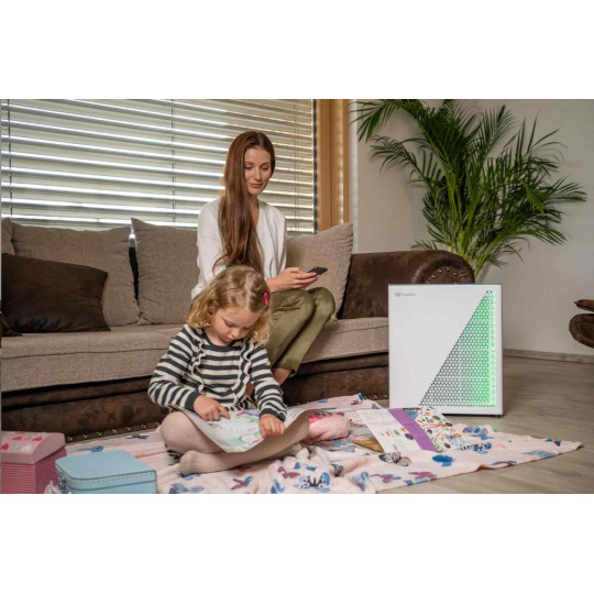 Čistička vzduchu TrueLife vyčistí až 310 m3 vzduchu za hodinu. Je vhodná do místnosti o velikosti 35-40 m2, můžete jí bez obav přenášet. Čistička celkově zlepšuje kvalitu vzduchu, ničí viry, bakterie a další nečistoty a může tak významně pomoci alergikům nebo astmatikům. Čistička je opatřena barevnými indikátory kvality vzduchu, funkcí automatické detekce nečistot a automatického čištění. Bydlíte-li na místě, kde se často práší, potěší vás přítomnost prachového senzoru. 7 násobná filtrace v podobě předfiltru, anti-bakteriálního filtru, HEPA filtru, uhlíkového filtru, katalytického filtru, UV světla a ionizace zachytí až 99,9% polétavého prachu a vyčistí 93,5 % těkavých organických látek. Zároveň zachycuje i viry a koronaviry.