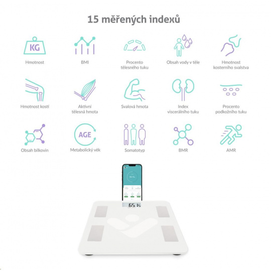 S inteligentní osobní váhou TrueLife FitScale W4 BT poznáte své tělo do nejmenších detailů. Přímo na LED displeji váhy se vám zobrazí tělesná hmotnost, podíl vody a tělesného tuku. V mobilní aplikaci, se kterou váhu snadno spárujete pomocí Bluetooth, můžete sledovat 15 indexů. Od podkožního tuku, přes kosterní svalstvo až po BMI nebo metabolický věk. V aplikaci najdete kompletní historii vašeho měření. Každý z měřených indexů je přehledně vysvětlen v sekci Health Report. V aplikaci si můžete zároveň nastavovat cíle a sledovat jejich plnění. Aplikace je dostupná i v češtině. Váha funguje i v režimu offline, výsledky měření si zapamatuje a do aplikace odešle, jakmile se s váhou znovu spárujete.