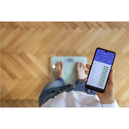 V aplikaci, do které se ukládá kompletní historie vašich měření, naleznete v sekci Health Report. Zde je každý měřený index podrobně vysvětlen, a vaše hodnoty zobrazeny na škále. U každého indexu pak naleznete doporučení ohledně stravy a cvičení, abyste si udrželi zdravý životní styl. Zároveň vám ukáže jak se efektivně držet svých cílů, ať už se snažíte nabrat svalovou hmotu, či redukovat tělesný tuk. Díky množství informací, grafů a statistik, které jsou dostupné přímo v aplikaci, nepotřebujete nic složitě zaznamenávat.