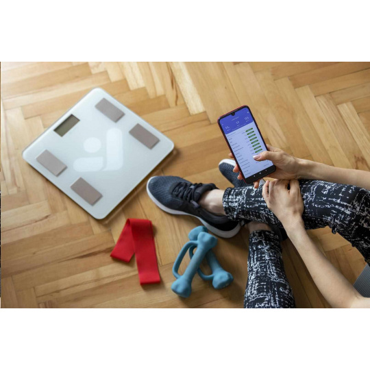 Váha funguje i v režimu offline. Během vážení proto nemusíte mít telefon vždy u sebe. Výsledky měření si vždy zapamatuje, a jakmile se s váhou znovu spárujete, odešle je do aplikace.