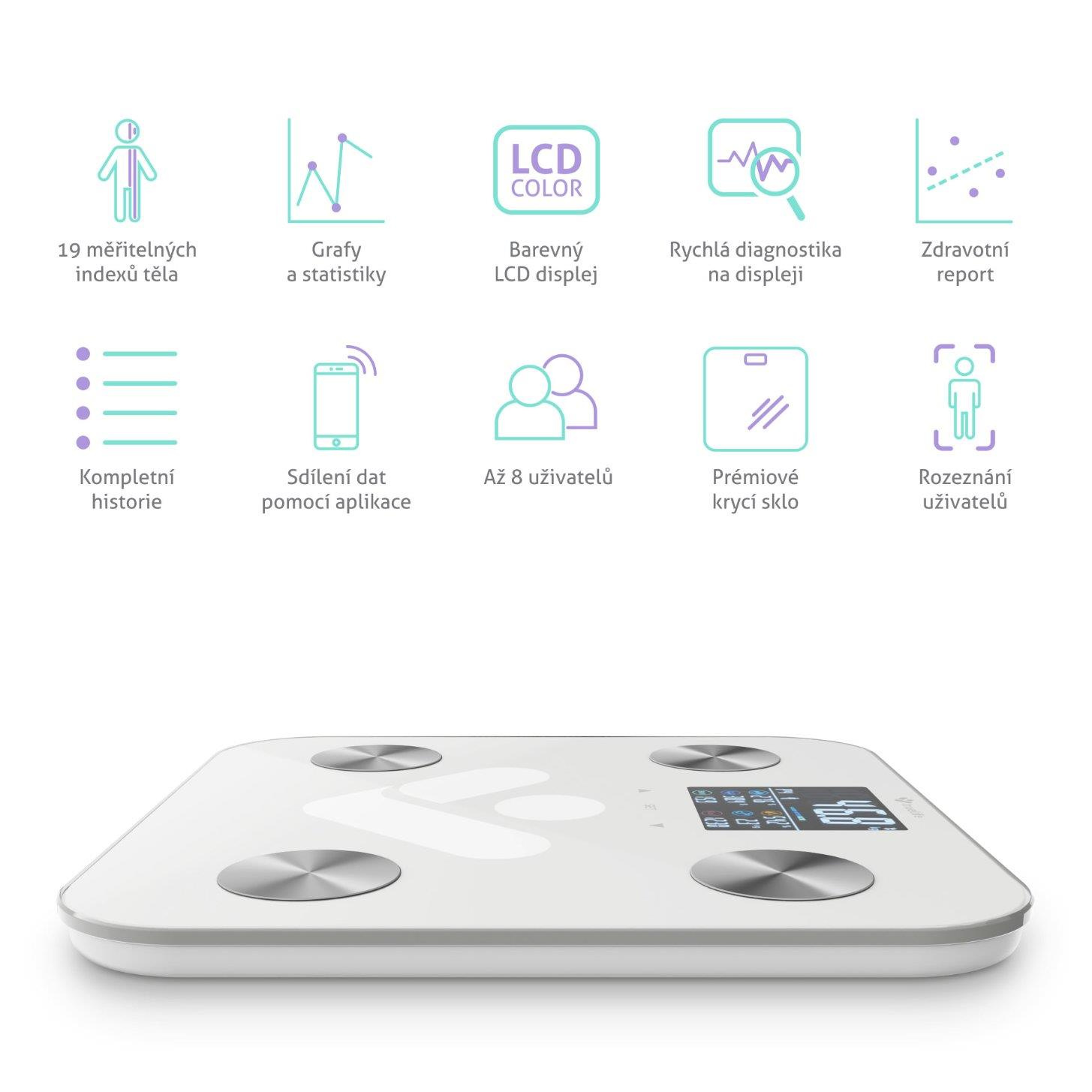 Představte si osobní váhu tak chytrou, že vám umožní dokonale poznat vlastní tělo. TrueLife FitScale W6 BT tohle umí. Velice přesně ukáže vaši aktuální hmotnost a přidá spoustu dalších užitečných informací díky bioelektrické impedanční analýze. Vše přehledně vidíte na barevném LCD displeji se 7 indexy těla. Váha je natolik inteligentní, že automaticky rozezná uživatele. Prémiové krycí sklo unese hmotnost až 180 kg. Váha postačí pro rychlou diagnostiku těla, ale pokud vás zajímá popis všech měřených indexů, skvělá je také mobilní aplikace. Stačí propojit váhu přes Bluetooth s telefonem a v aplikaci hned vidíte kompletní tělesný reporting i statistiky.