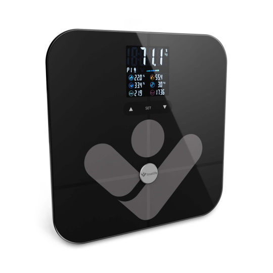 Svůj zdravý životní styl nejlépe podpoříte, budete-li dokonale rozumět svému tělu. Pomoci vám v tom může inteligentní váha TrueLife FitScale W7 BT. Kromě zjištění hmotnosti, provede také diagnostiku pomocí bioelektrické impedanční analýzy a vypočítá 19 měřitelných indexů, z toho 7 i bez použití aplikace. Své výsledky vidí uživatel na přehledném barevném LCD displeji. Váhu lze propojit prostřednictvím Bluetooth s mobilním telefonem a stažením aplikace získáte ještě detailnější přehled o tom, co se s vaším tělem děje. Váha je vyrobena z tvrzeného ITO skla, které je velmi odolné a má nosnost až 180 kg. Zaměřte se na své zdraví komplexně, pouhá hmotnost není tím hlavním ukazatelem.