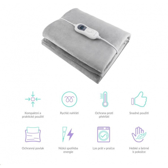 S pomocí funkce rychlého a rovnoměrného nahřívání se deka začne nahřívat ihned. Na požadovanou teplotu je zahřátá do pár minut.