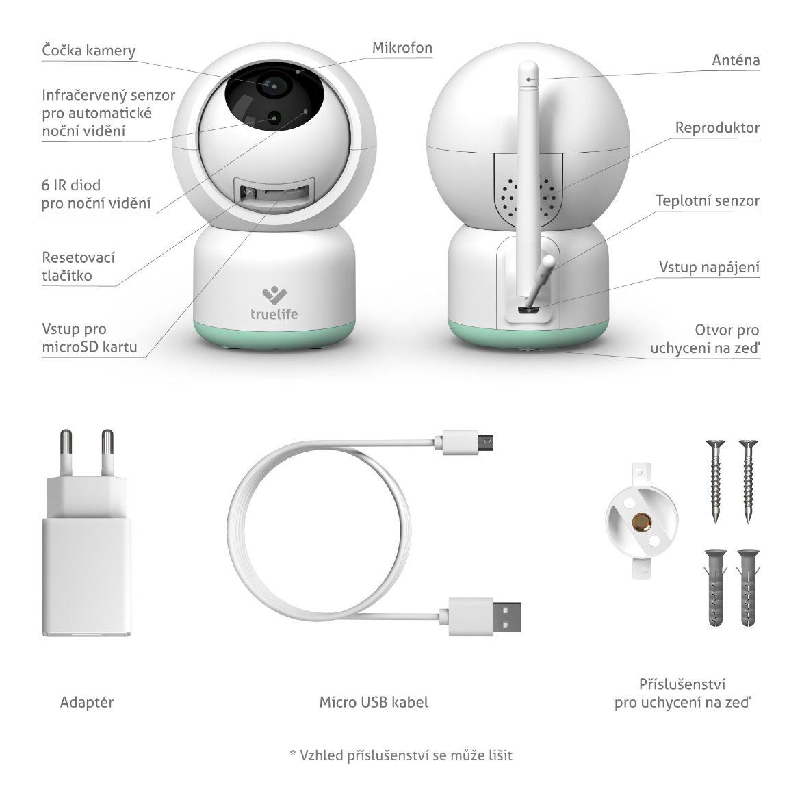 V balení naleznete také montážní sadu pro uchycení na zeď.
