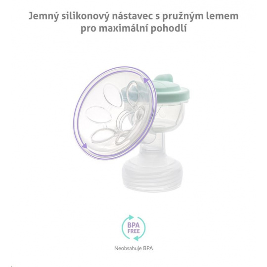 Odsávačka je vyrobena z kvalitního a zdravotně nezávadného plastu a silikonu bez BPA sloučenin.
